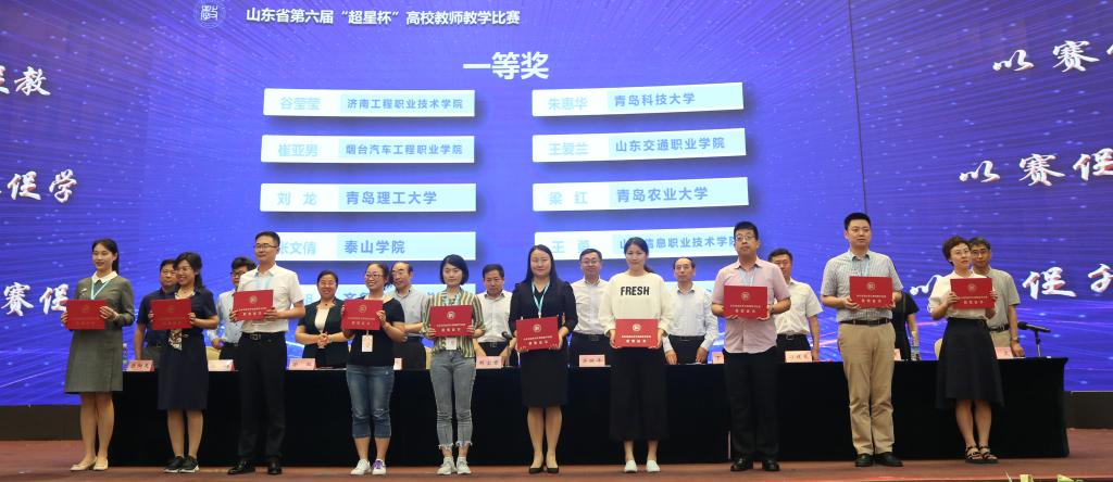 5月24-26日,由山东省高等学校师资培训中心承办的山东省第六届“超星杯”高校教师教学比赛决赛在山东外贸职业学院(泰安基地)举行。山东省教育厅副厅长关延平出席颁奖仪式并讲话,省教育厅教师工作处和比赛相关承办协办单位负责同志参加活动并为一等奖选手颁奖。